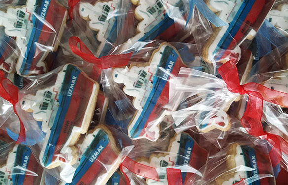Yeni yıl kutlamalarında, hediye sepetlerinde, çalışanlarınız, müşterileriniz ve iş ortaklarınız için eşsiz yeni yıl kurabiyeleri yapıyoruz. Kurabiyelerin üzerinde sadece şeker hamuru vardır, şeker hamuru üzerine doğrudan baskı yapılır. Logolu ve logosuz yeni yıl kurabiyeleri için hemen bağlantıya geçiniz.